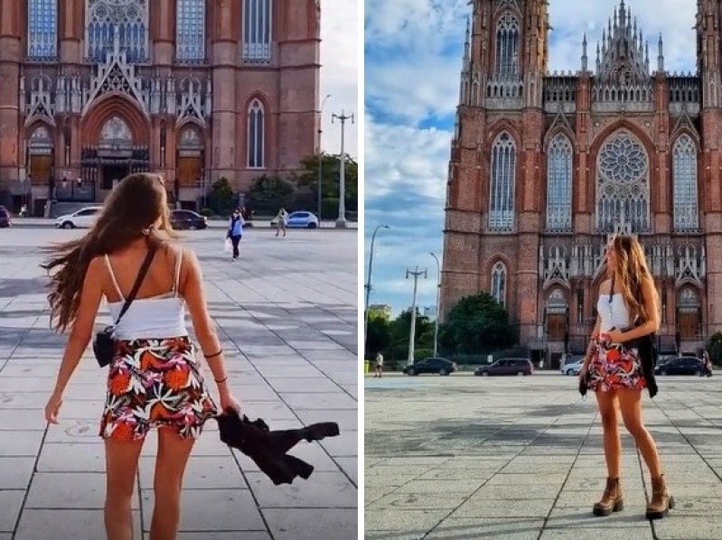 La influencer recorrió varios lugares de la ciudad de La Plata hasta llegar a Plaza Moreno, donde se encontró con la imponente Catedral. Quedó maravillada, pero hizo una insólita comparación: