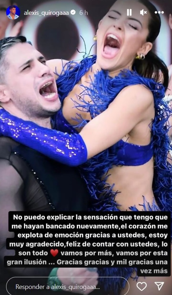 Alexis “Conejo” Quiroga expresó su gratitud con contundencia en Instagram Stories tras ser elegido por el público para continuar en Bailando 2023.