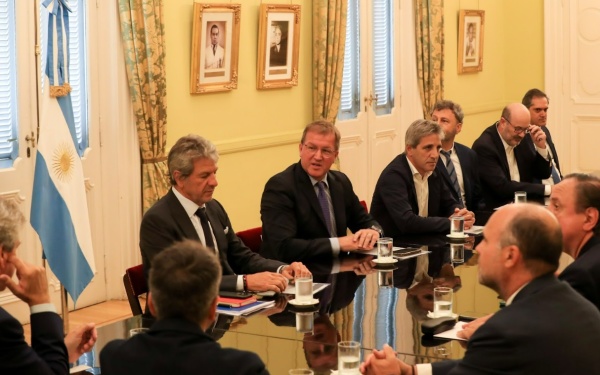 El ministro de Economía, Luis Caputo, encabezó este jueves un encuentro en Casa Rosada con el secretario de Comunicación y Prensa, Eduardo Serenellini; su par de Planeamiento y Gestión para el Desarrollo Productivo y la Bioeconomía, Juan Pazo; de Trabajo, Omar Yasin; el titular de la Unidad Transitoria para la Desregulación de la Economía, Federico Sturzenegger; el asesor Shunko Rojas; y cámaras agrarias, industriales y de servicios.