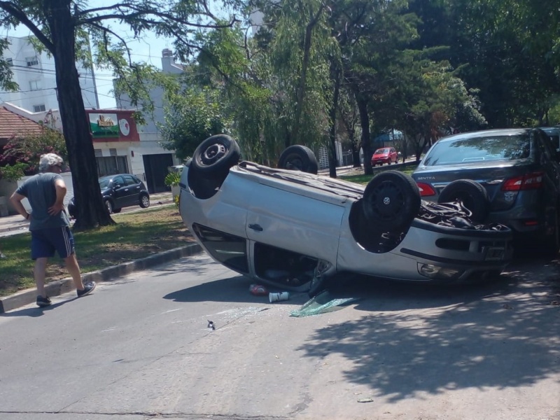 La peor parte se la llevó el vehículo gris, que quedó con las ruedas hacia arriba y con graves destrozos, en medio de la calle. Por las abolladuras sobre su costado derecho, el Peugeot color rojo lo habría embestido.