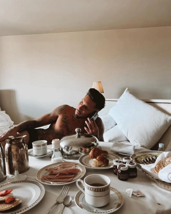 La ex de Rodrigo De Paul presumió a su pareja desde la cama, en ropa interior y a punto de servirse un imponente desayuno. La cita romántica también incluyó chapuzón en la piscina, chocolates y globos en forma de corazón.
