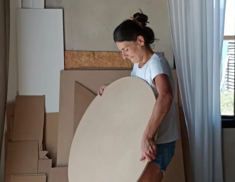 Juan, su pareja por aquel momento, la ayudaba enormemente. Es carpintero. “Me armó un banco de trabajo para poder cortar los discos. Vimos miles de tutoriales. Siempre me apoyó mucho con esto”, subraya.