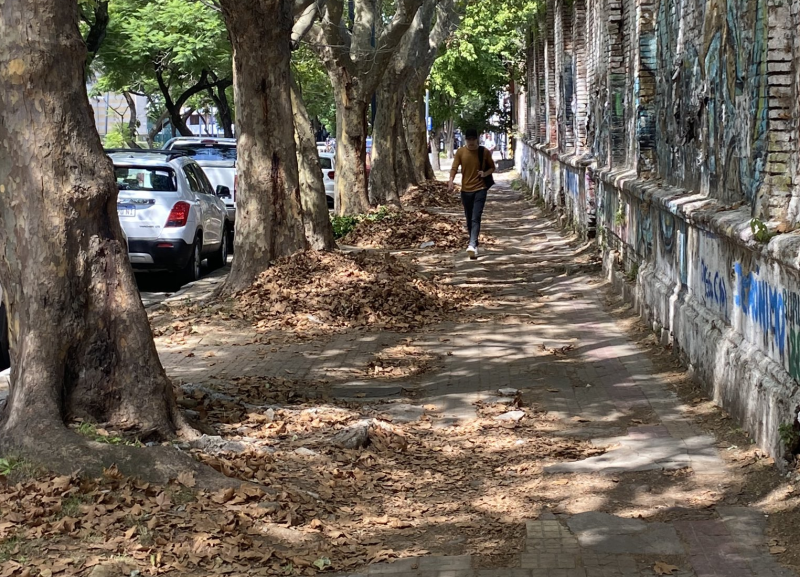 Según indicó, “colocaron montones de hojas para tapar las imperfecciones de la peor vereda de La Plata”.