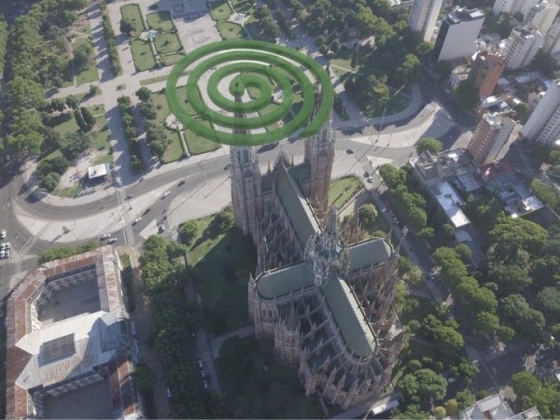 La catedral no fue el único lugar, también viralizaron el obelisco platense con un gran espiral encima.