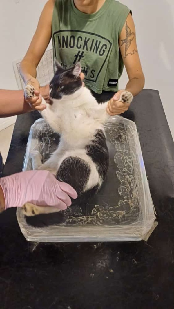 En este sentido, señalan que el señor Ezequiel Kelo fue el rescatista un gato que tenía 5 balas y pero que gracias al accionar del veterinario, se pudo salvarle la vida.