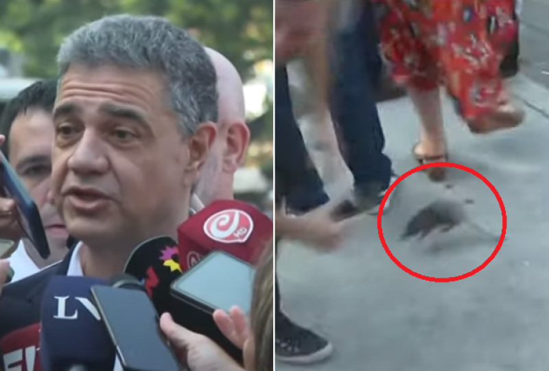 “¡Una rata!”, fue el grito de una de las periodistas, y la mayoría de los movileros se alejaron. Macri esbozó una risa por la insólita situación. Finalmente la rata se alejó y fue la presa de dos perros.