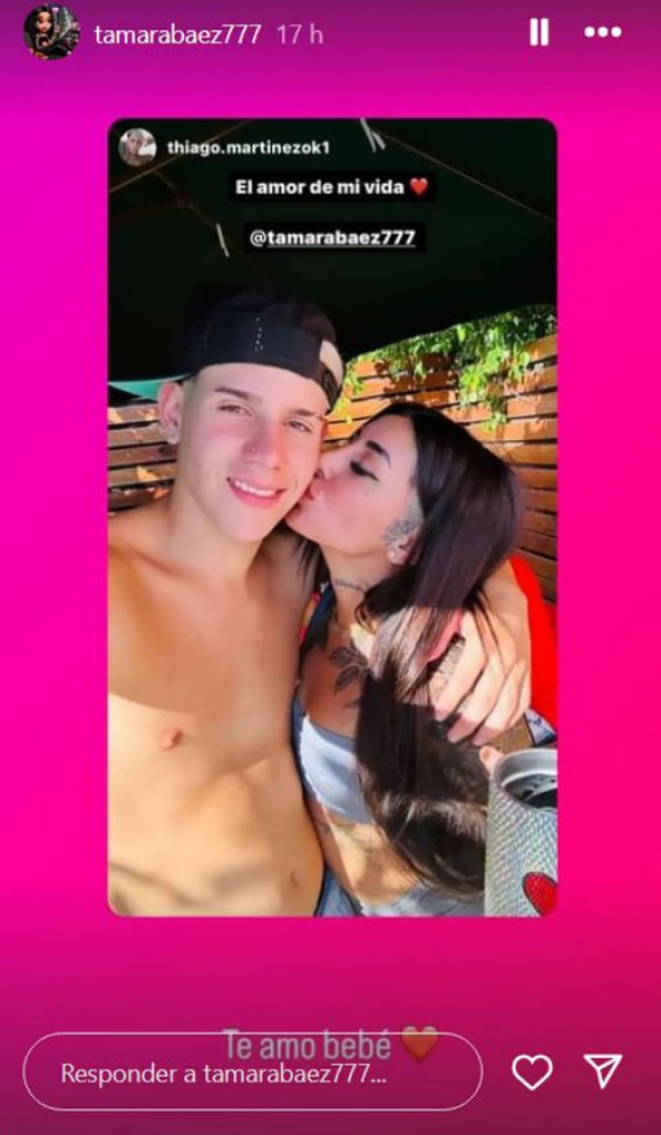 Por su parte, Thiago también se mostró muy enamorado de Tamara: “Cómo agradecer lo feliz que me hacés, amor. ¡Gracias por todo! Te amo, vamos por más momentos lindos. Te amo, mi amorcito”.