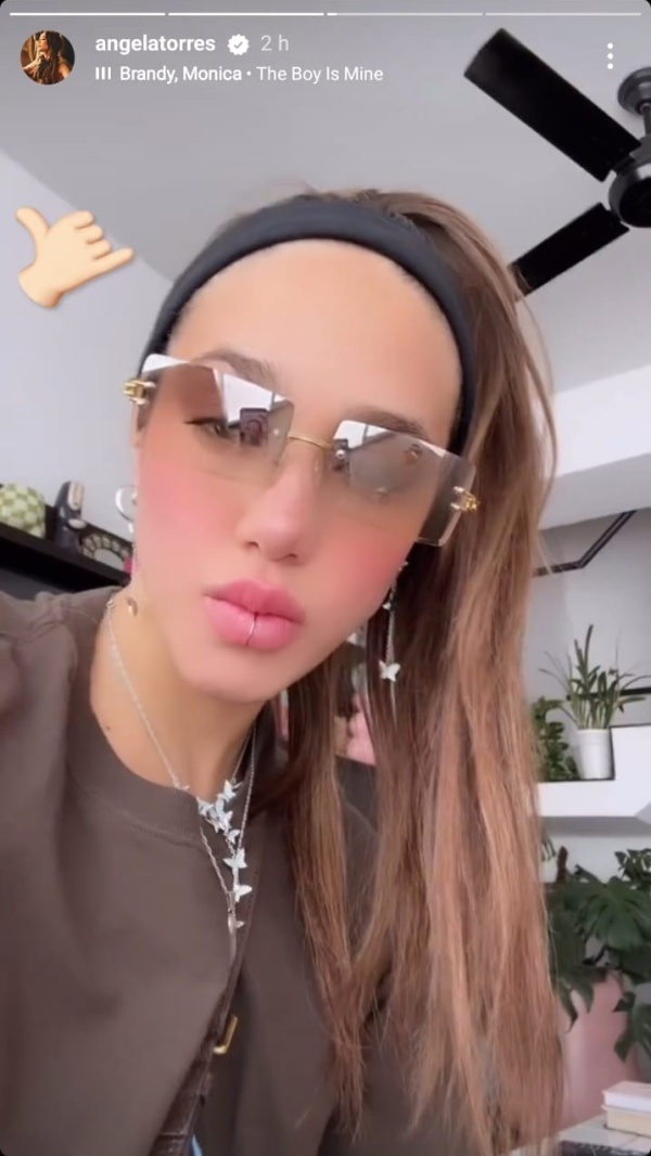 Entre otros indicios, Ángela reposteó en una historia de Instagram la canción que lanzó Rusherking, “A puro dolor”, que forma parte del proyecto musical de Emanero. Ángel López también forma parte de este reciente lanzamiento. Al repostear el video, le agregó un corazón flechado.