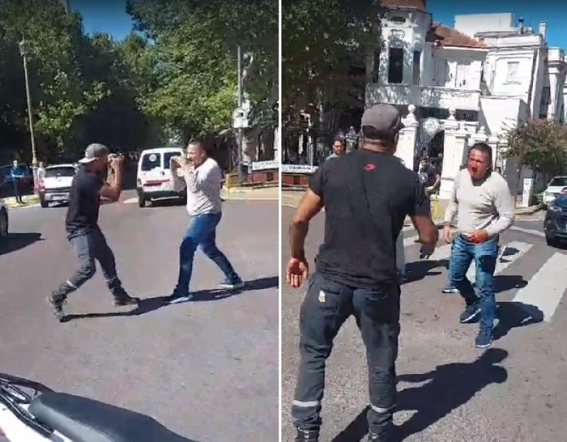 El hecho ocurrió alrededor del mediodía de este jueves en diagonal 74 y 45, pleno centro de La Plata y mientras circulaba una gran cantidad de vehículos. En medio de la calle, los protagonistas se trenzaron a golpes de puño y fueron filmados.
