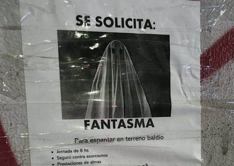 Según rezaba en el cartel, se buscaba un fantasma “para espantar en terreno baldío”, y se había alusión a tener 5 años de experiencia y certificado de defunción original más dos copias.