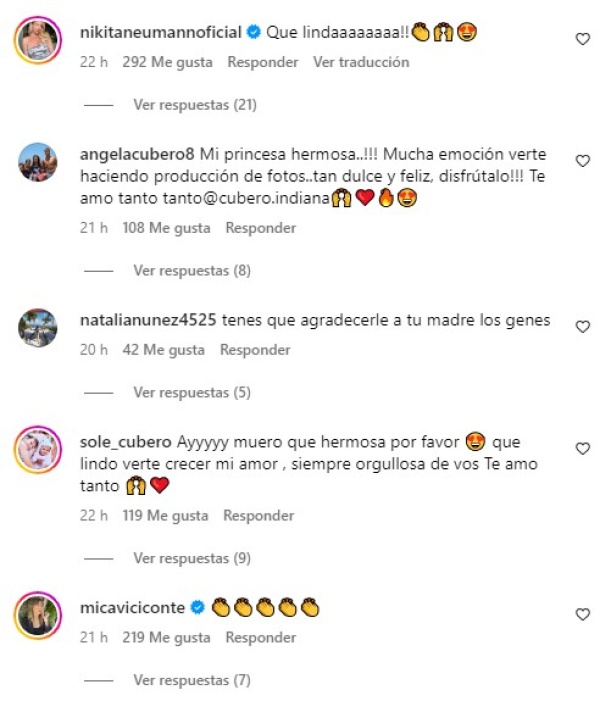 Luego de que Indiana (la hija que Fabián Cubero con Nicole Neumann, con quien también tiene a Allegra y Sienna) compartiera en sus redes sociales un adelanto de la campaña de ropa deportiva que la tiene como figura en su debut como modelo, Mica Viciconte reaccionó contundente.