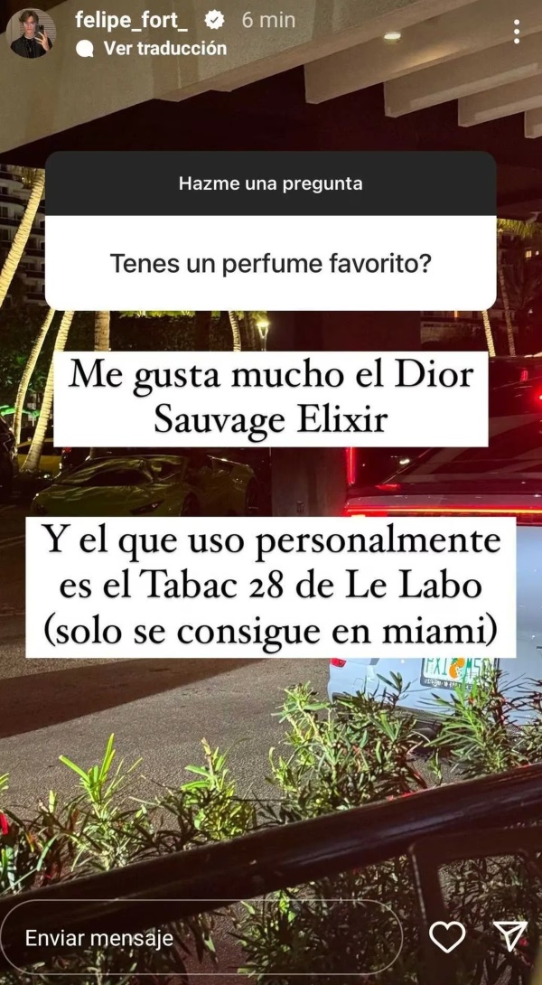 Felipe Fort dejó a todos sin palabras tras revelar en su cuenta oficial de Instagram cuáles son sus perfumes favoritos, de los cuales uno de ellos no se consigue en Argentina.