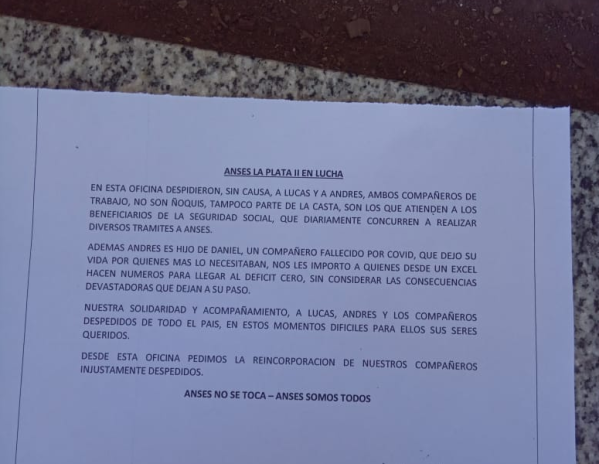 "En ANSES no vamos a edulcorar la realidad ni tolerar más despidos. En las primeras horas del día de hoy muchas compañeras y compañeros recibieron telegramas de despido. El Gobierno intenta destrozar el Estado y tenemos que resistir. No podemos permitir que lo desarmen y tampoco todas las políticas que benefician y protegen a la población”, habían indicado desde ATE Anses el pasado viernes.