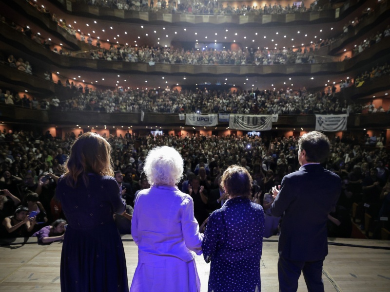 El gobernador de la provincia de Buenos Aires, Axel Kicillof, participó este miércoles de un concierto en homenaje a la lucha y el trabajo por los Derechos Humanos de las Abuelas de Plaza de Mayo. Fue en la Sala Ginastera del Centro Provincial de las Artes Teatro Argentino de La Plata, junto a la presidenta de la asociación civil, Estela de Carlotto, la vicepresidenta Buscarita Roa, y la titular del Instituto Cultural, Florencia Saintout.