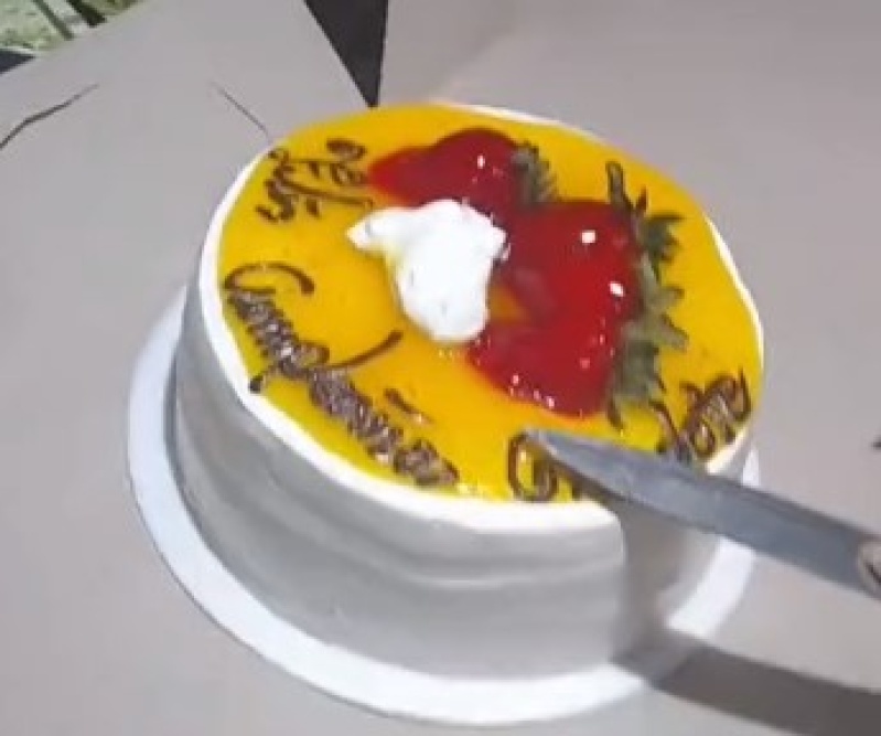 En el clip, se puede observar que arriba de la torta estaba escrita la frase “Feliz cumpleaños grandote”, pero en realidad la mamá de la chica había solicitado que se escriba el “feliz cumpleaños” con letra grande. Para resolver este pequeño error, utilizaron un cuchillo para retirar la palabra grandote.
