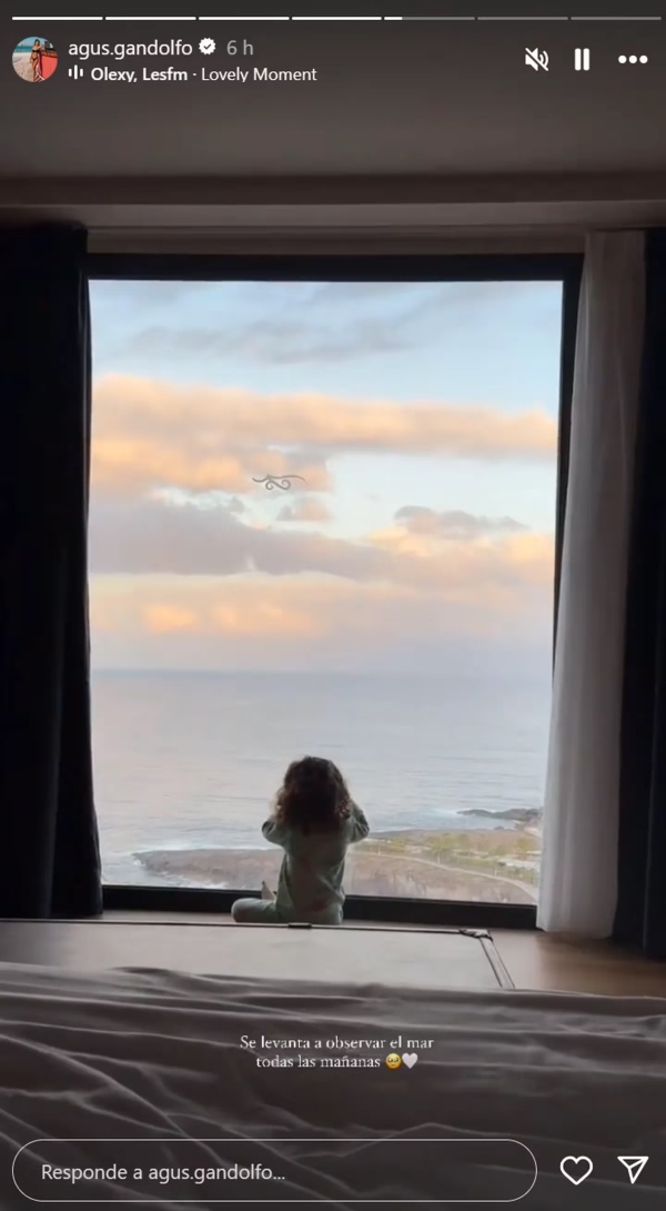 En el clip, se puede ver a la nena sentada, a primera hora de la mañana, en la habitación frente al ventanal que da al paradisíaco mar. “Se levanta a observar el mar todas las mañanas”, contó, junto a cariñosos emojis. ¡Es muy tierna!