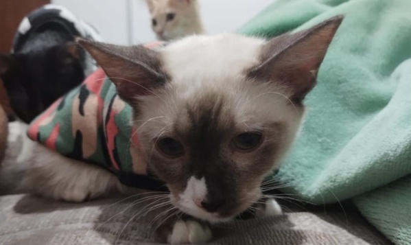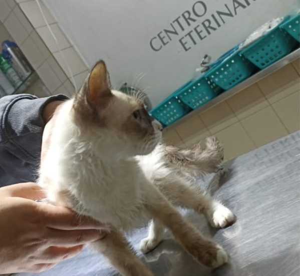 En su paso por la veterinaria, el gato fue intervenido quirúrgicamente y luego le dieron un antiinflamatario. Aún así, necesita un desparasitante y otros medicamentos.