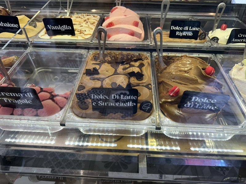 Adjuntó una foto en la que se aprecian los nombres de los sabores: "Vaniglia", "crema di fragole", "dolee di latte ripieno" y "dolce di latte". En la página de Instagram de la heladería "Giulietta", se aprecian más: "Vaniglia", "Pistacchio" y "Zabaione".