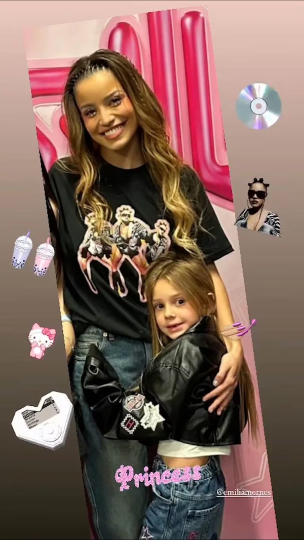 Asimismo, la actriz y su primogénita no desentonaron para la tan esperada ocasión, ya que fueron maquilladas al estilo de Emilia Mernes, quien desde sus inicios se destacó por utilizar unos brillos en el inferior de sus ojos. Completamente en sintonía con el evento multitudinario, la expareja de Rusherking vivió momentos a pura adrenalina y con los sentimientos a flor piel que revolucionó a los fanáticos de la joven artista.