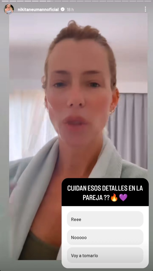 “¿Cuidan esos detalles en la pareja?”, les preguntó Neumann a los dos millones de usuarios que la siguen en Instagram y agregó una encuesta para que puedan votar.