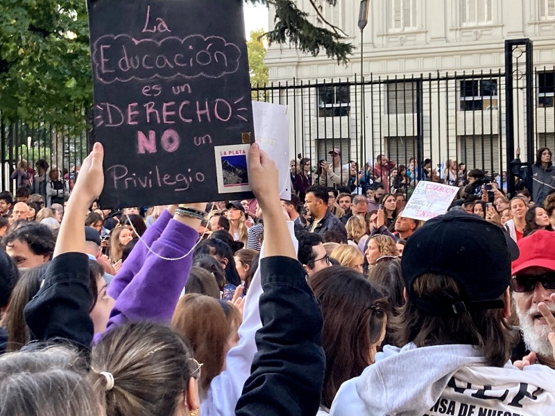 En el marco de la marcha federal universitaria en distintos puntos del país, estudiantes, docentes y no docentes de la UNLP (Universidad Nacional de La Plata) se concentraron esta tarde en la puerta del Rectorado.