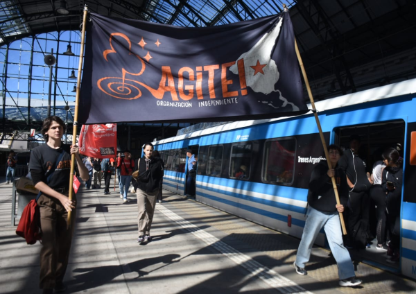 La estación de 1 y 44 fue copada por estudiantes y docentes que movilizarán a la marcha en defensa de la universidad pública.