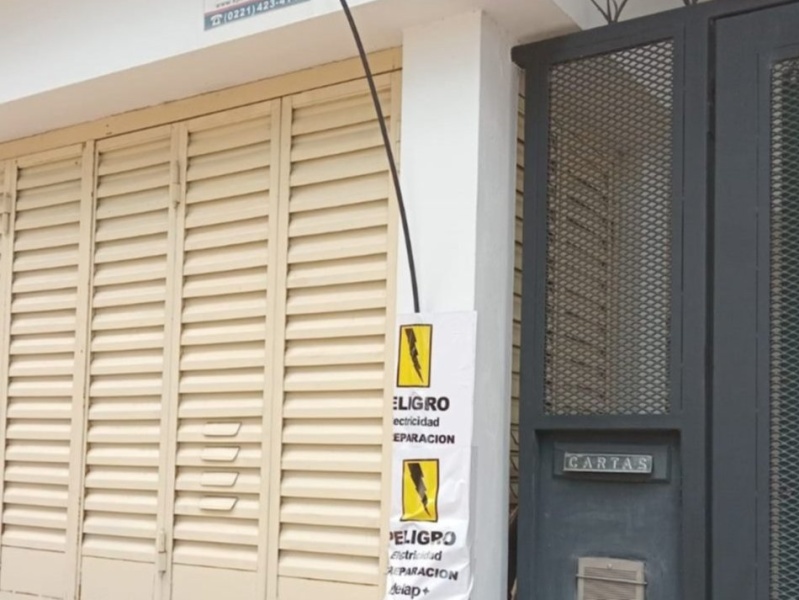 "Desde el 5 de abril estamos así. La gente, imprudente, despega los papeles de 'peligro' que se utilizan para advertir. Tuve que poner una caja y un palo que sea visible. Esta a la altura de los fusibles", comentó indignada una de las vecinas.