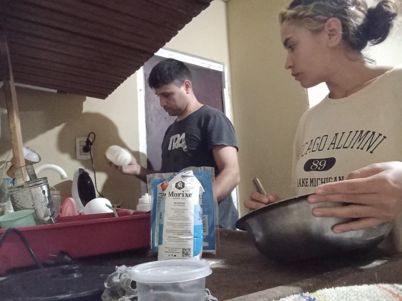 Tuvieron que tomar dos micros para llegar. A pulmón. Ella fue con su hermano que se portó muy bien y la acompañó. No es fácil con el bebé que tienen: se turnan para cuidarlo mientras continúan con el emprendimiento. El nene no es tonto y también aprovecha para manotear alguna dona, según dice entre risas Emilse.