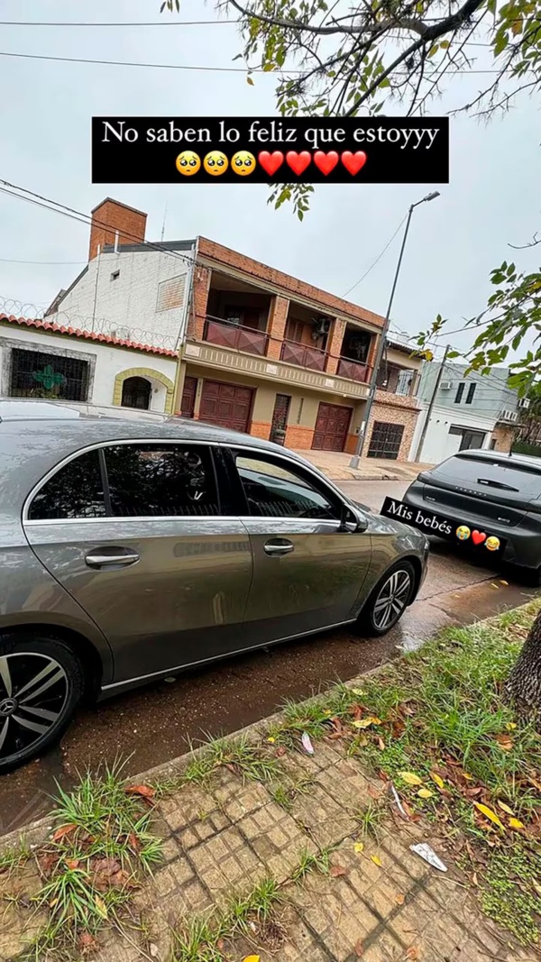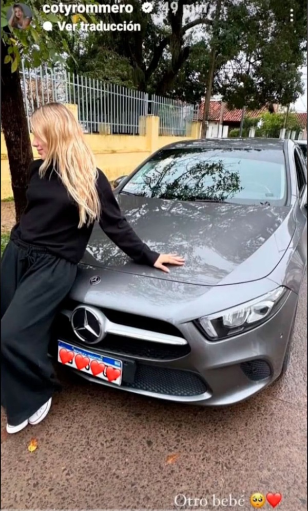“Otro bebé”, tituló la correntina la foto, en la que se sonriente, junto a su nuevo Mercedes-Benz Clase A, color gris.