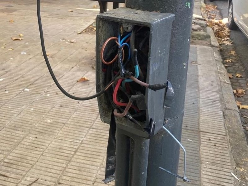 Vecinos del centro de La Plata reclaman por postes de luz sin seguridad y cables a la vista en la vía pública.