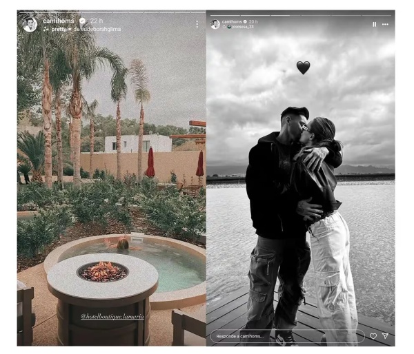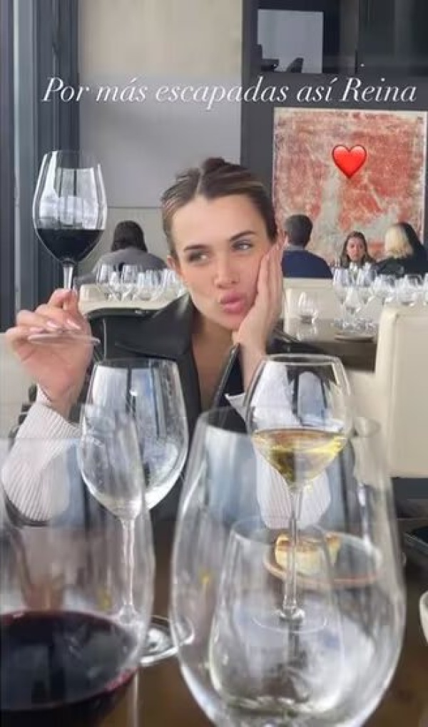 "Lo feliz que me hacés", dijo ella en un video mientras abraza al jugador de Estudiantes. "Enamorada de vos", escribió después en una historia con una foto de él mientras desgustaba el vino.