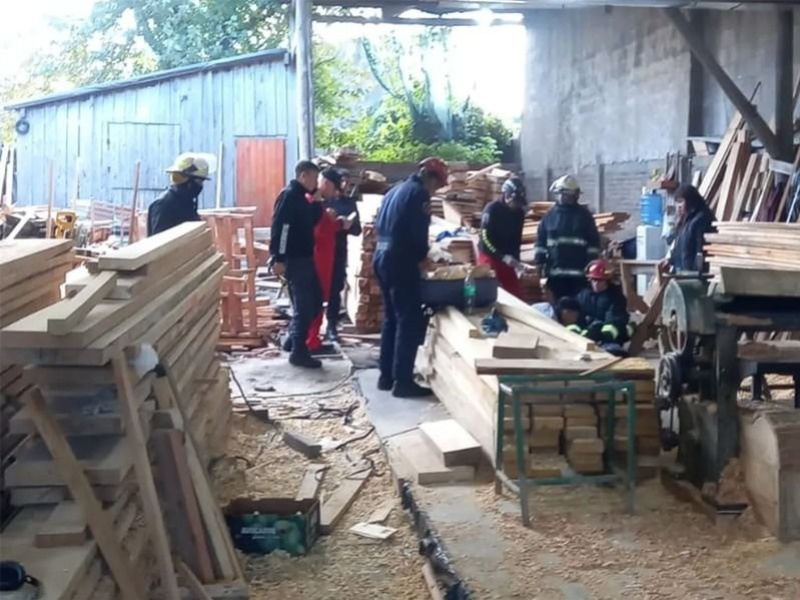 Según informaron, el operario de 24 años ponía en altura tirantes de madera, cayeron sobre él y quedó atrapado. Ocurrió esta tarde en la maderera de avenida 32 entre 148 y 149.