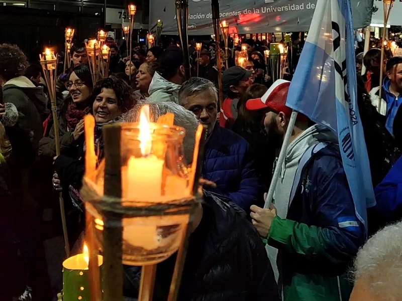 Estudiantes, docentes y no docentes de la UNLP (Universidad Nacional de La Plata) realizaron una multitudinaria marcha con antorchas por avenida 7 en defensa de la educación pública.