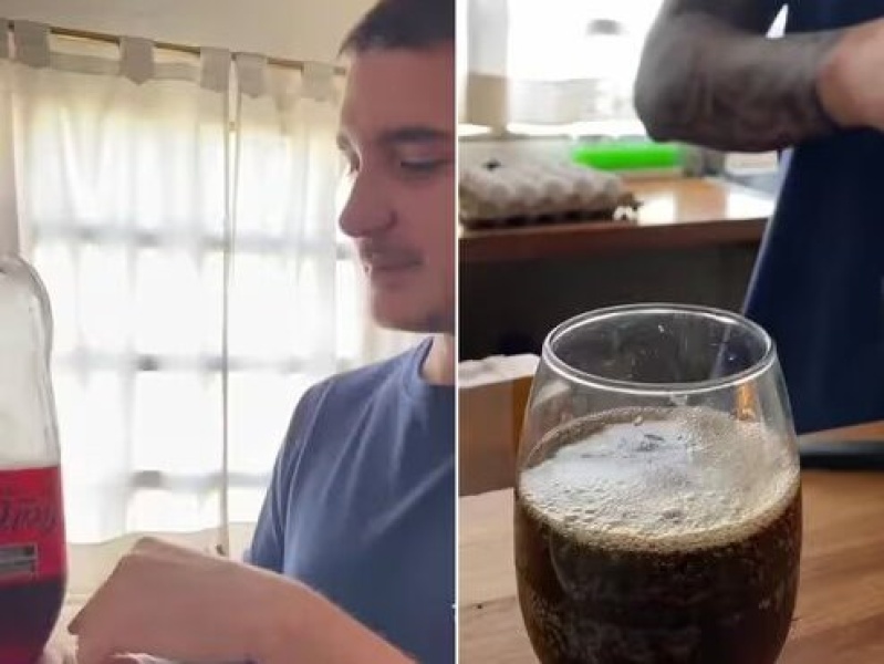La técnica sugerida por la pareja consiste en guardar la botella de gaseosa al revés, con el pico hacia abajo. De esta manera, el gas intenta escapar por la parte superior de la botella, pero se encuentra con la base, donde no tiene salidas posibles. Este método, según detallan, evita la fuga de gas, que normalmente ocurre incluso cuando la tapa se cierra con fuerza. “Ahora lo vamos a probar”, dice el joven en el video, alentado por su pareja a experimentar con esta nueva técnica.