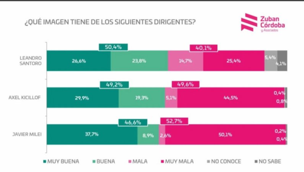 Kicillof logra el 49,2% de imagen positiva sobre un 49,6% de negativa, mientras que el diputado Leandro Santoro fue el dirigente con mejores números al cosechar un 50,4% de imagen positiva y un 40,1% de negativa.