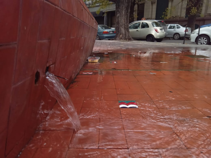 Todo sucede en Diagonal 80 a la altura de la iglesia San Ponciano. El agua drena desde la fuente que está en la plazoleta.