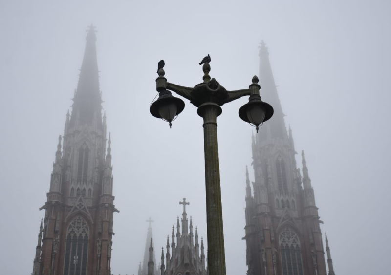 Uno de los lugares elegidos fue la Catedral de La Plata, donde la parte superior se mantenía “invisible” por la niebla. También hubo neblina en la Ciudad de Buenos Aires y otros puntos del AMBA.