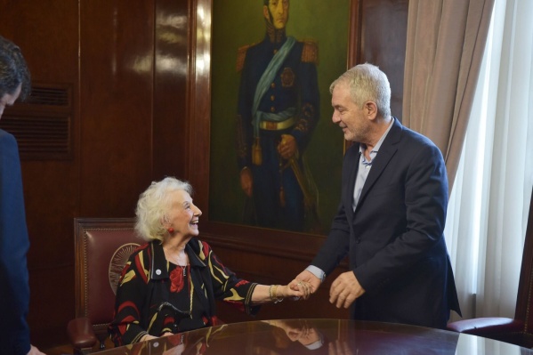 “Tenemos el honor de recibir a una de las líderes en Derechos Humanos más importantes del mundo y la suerte de que sea vecina de La Plata quien conduce una organización tan importante como es Abuelas”, valoró el jefe comunal, quien estuvo acompañado por el secretario de Gobierno, Guillermo “Nano” Cara.