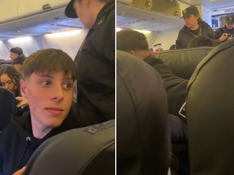 Cabe aclarar que no se sabe la identidad del joven y que lo único que se puede divisar es que su asiento se ubicaba muy cerca de la cabina del piloto. “Uno se puso a fumar en el avión y cayó la policía con esposas”, escribió la mujer en un texto que aparecía en la parte superior del video.