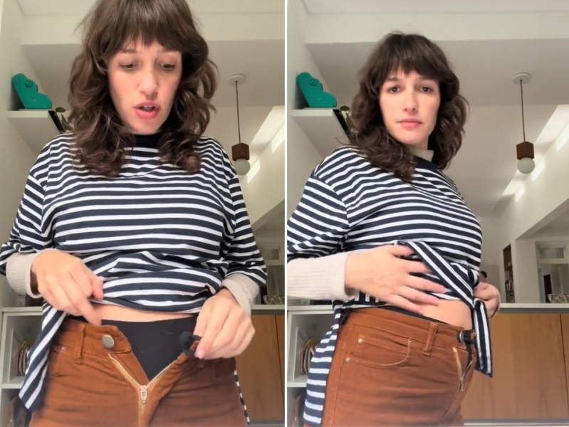 La actriz, que espera a su primer hijo junto a Andrés Gil, subió un video a TikTok dándoles un útil consejo a las futuras mamás, para que puedan abrocharse el pantalón cuando la pancita ya empezó a asomar.