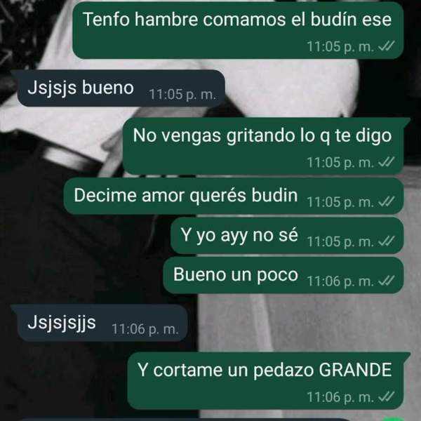 La situación se tornó divertida cuando, después de una cena ligera en la casa de la abuela, la chica decidió escribirle a su novio por la aplicación para expresarle que no se había llenado y que quería comer un budín que había ahí. “Jajaja, bueno”, le respondió él, comprendiendo la situación.