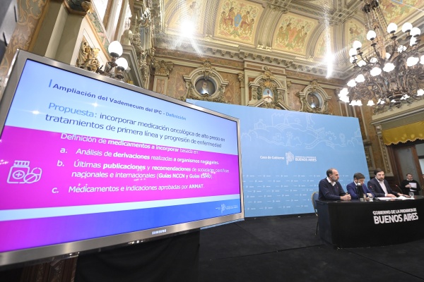 El gobernador Axel Kicillof anunció este martes junto al ministro de Salud, Nicolás Kreplak, la ampliación del vademécum provincial de medicamentos oncológicos, que con una inversión de $12.000 millones permitirá sumar 10 principios activos de alto precio a la cobertura del Instituto Provincial del Cáncer (IPC).