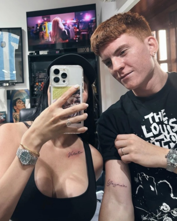 En una foto que subieron a sus respectivas cuentas de Instagram, mostraron que se tatuaron el nombre de ambos y en diferentes parte del cuerpo. Yaz eligió su pecho para inmortalizar para siempre el nombre de su novio, y el defensor hizo lo propio en su brazo.