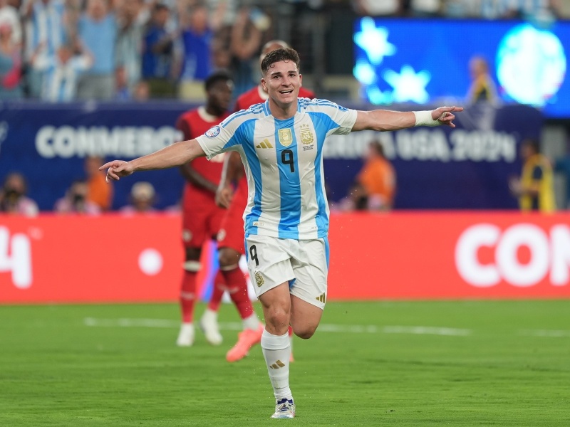 Argentina de arranque impuso condiciones y mostró muy imagen muy diferente a la que se observó frente a Ecuador y de hecho a los 22 minutos de la primera etapa abrió el marcador luego de una gran habilitación de Rodrigo De Paul. El mediocampista de Atlético Madrid lanzó en el círculo central del campo un pelotazo entre medio de los centrales de Canadá que controló de muy buena manera Álvarez y definió entre las piernas del arquero Maxime Crépeau.