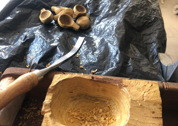 Ahora realiza portamacetas, artesanías, tallado de cucharas, espátulas, tenedores, cucharitas mieleras, pipas, y más.