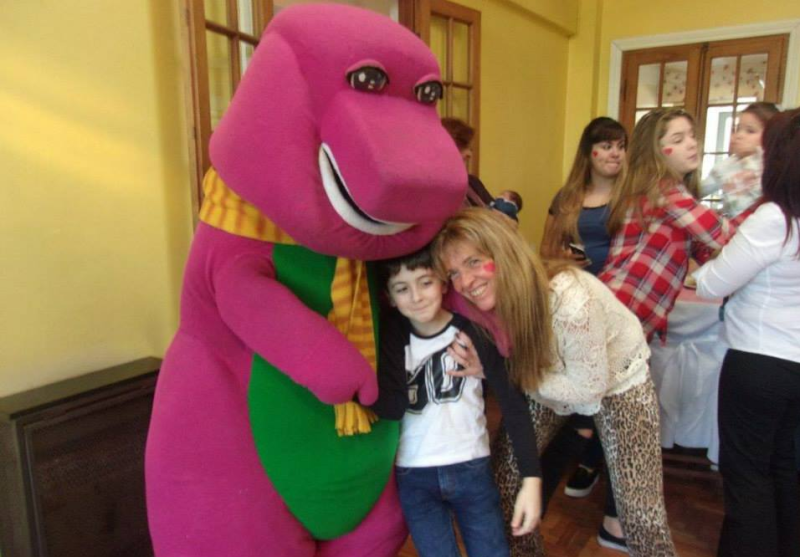 “Fuimos y a partir de ahí no paramos de trabajar. No había internet ni celulares. Íbamos en una moto con el traje de Barney, y con un casette pasábamos tres o cuatro canciones en los cumpleaños. Era una sorpresa al momento de la torta. Trabajamos muchísimos años con eso”, señala.