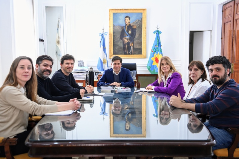El gobernador de la provincia de Buenos Aires, Axel Kicillof, se reunió con la vicegobernadora y presidenta del Senado, Verónica Magario, la presidenta del bloque de senadores de Unión por la Patria, Teresa García, y el presidente del bloque de diputados, Facundo Tignanelli, para analizar el estado de situación del proyecto de inversión para la instalación de la planta productora de GNL por parte de las empresas YPF y Petronas.