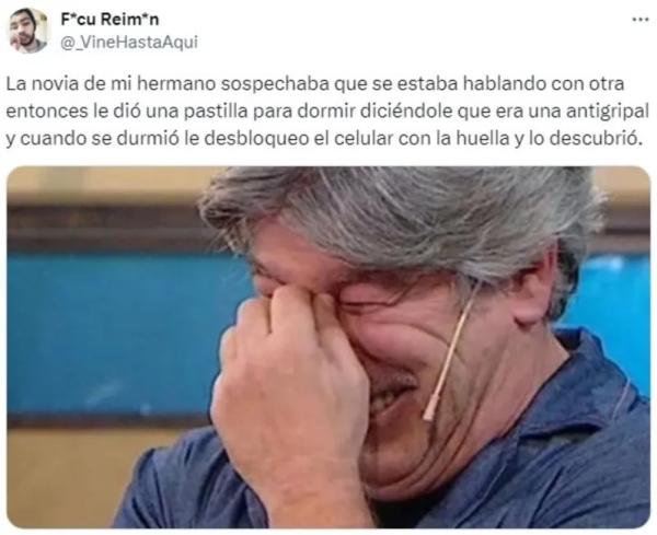 “La novia de mi hermano sospechaba que se estaba hablando con otra, entonces le dio una pastilla para dormir diciéndole que era una antigripal y, cuando se durmió, le desbloqueó el celular con la huella y lo descubrió”, contó el chico, riéndose de una situación que, para muchos, resultó más grave que graciosa.