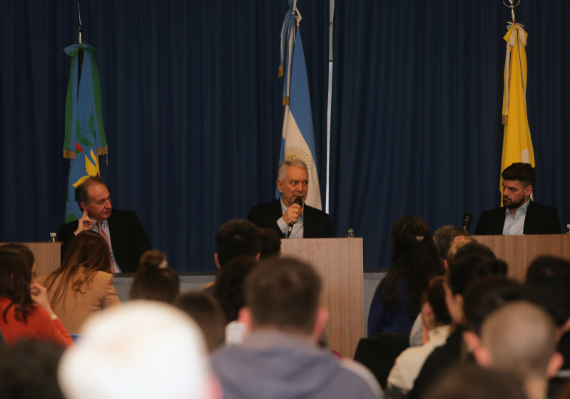 El encuentro tuvo lugar en el salón auditorio de la Facultad de Derecho y Ciencias Políticas de la Universidad Católica de La Plata (UCALP), donde el mandatario de la capital bonaerense habló sobre la realidad latinoamericana y mundial, los desafíos de la política argentina y los objetivos a nivel local.