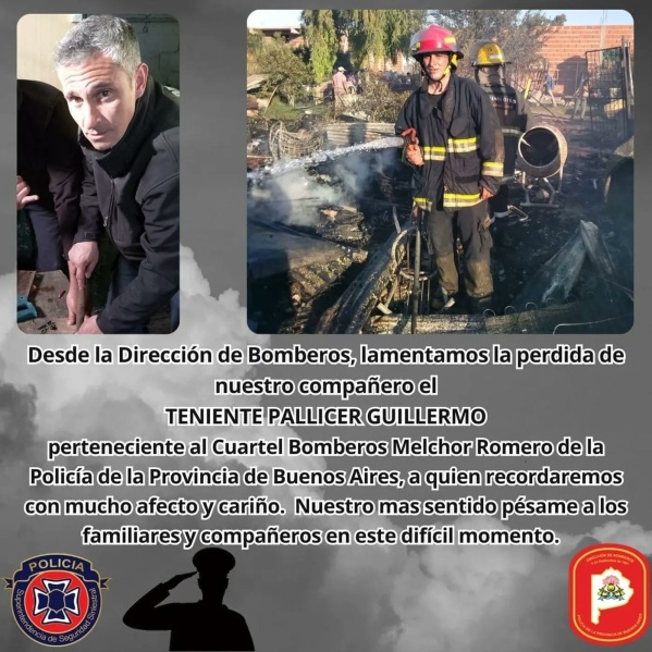 En las últimas horas, desde la Dirección de Bomberos expresaron su dolor. "Lamentamos la pérdida de nuestro compañero", dijeron en una imagen que circuló a través de las redes sociales.